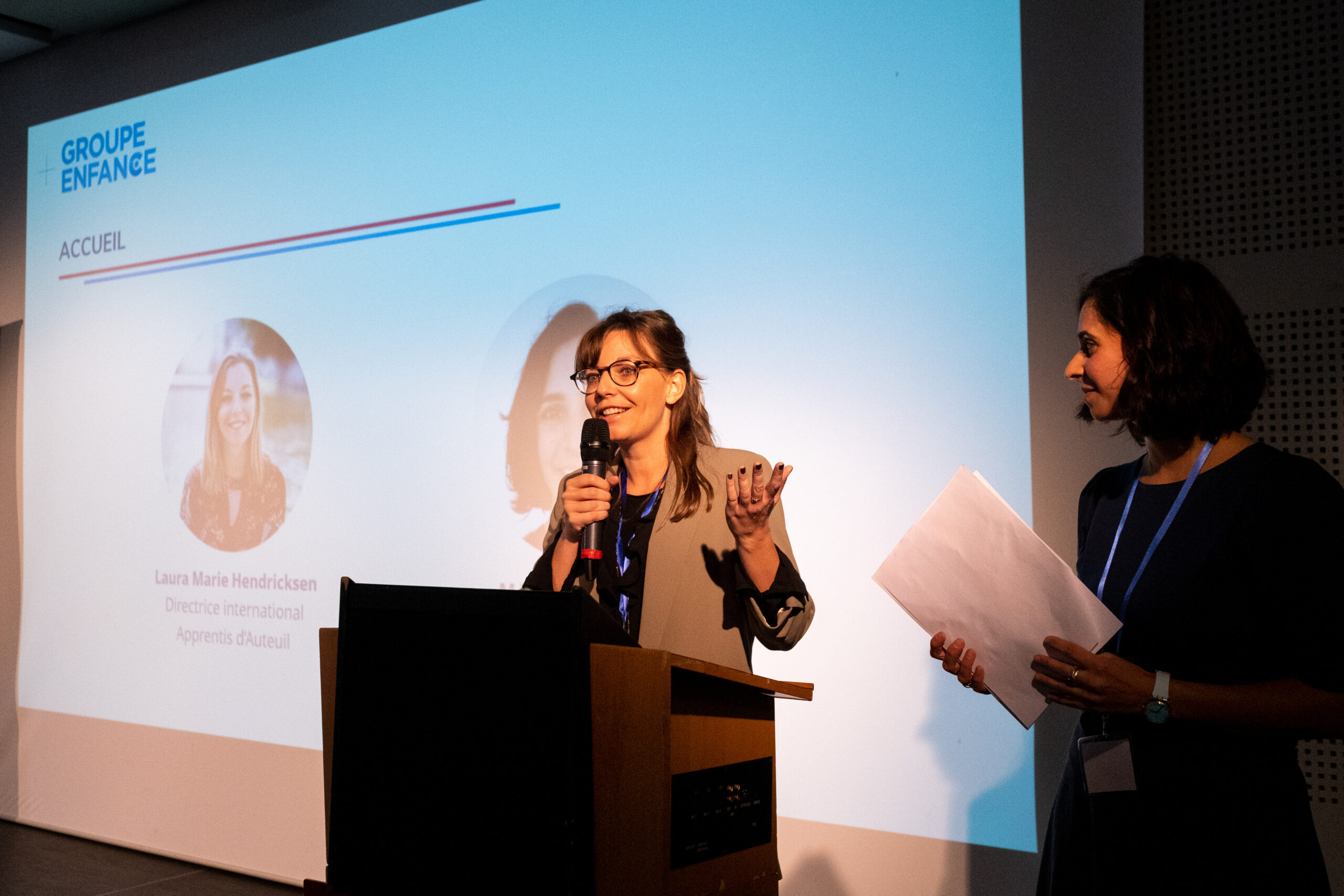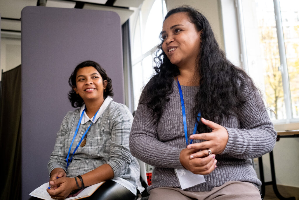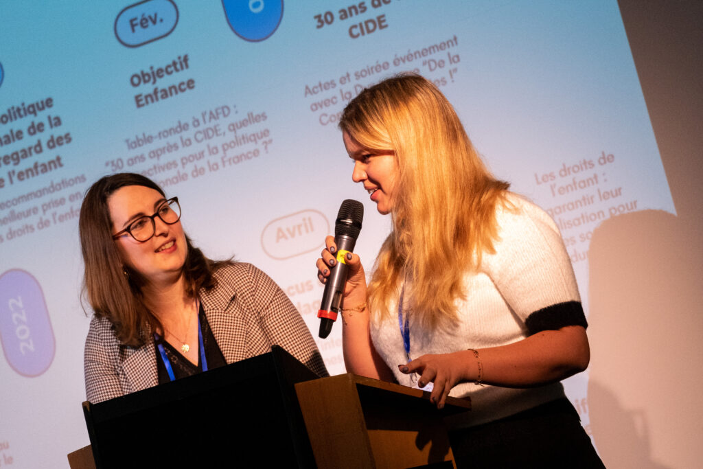 De gauche à droite : Florine Pruchon, Responsable de plaidoyer, SOS Villages d’Enfants France ; Alexia Tafanelli, Directrice de la Coordination Humanitaire et Développement