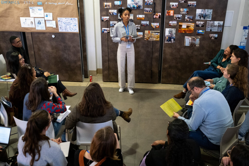 A la suite de ce premier temps de plénière, une bibliothèque humaine a permis aux participants d’échanger autour de pratiques inspirantes menées par des ONG membres du Groupe Enfance.