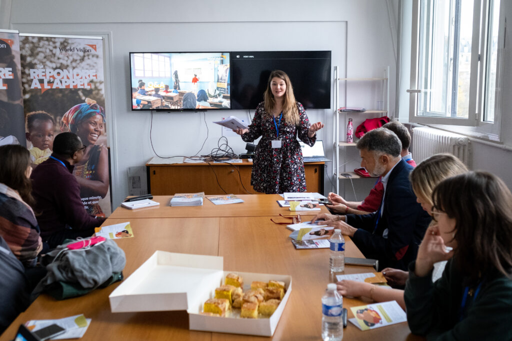 World Vision France a présenté aux participants un projet d’urgence mis en œuvre en Syrie visant à fournir aux garçons et aux filles dans les camps de déplacés et communautés hôtes des possibilités d’éducation non formelle, une nutrition adéquate, et des moyens de les protéger.