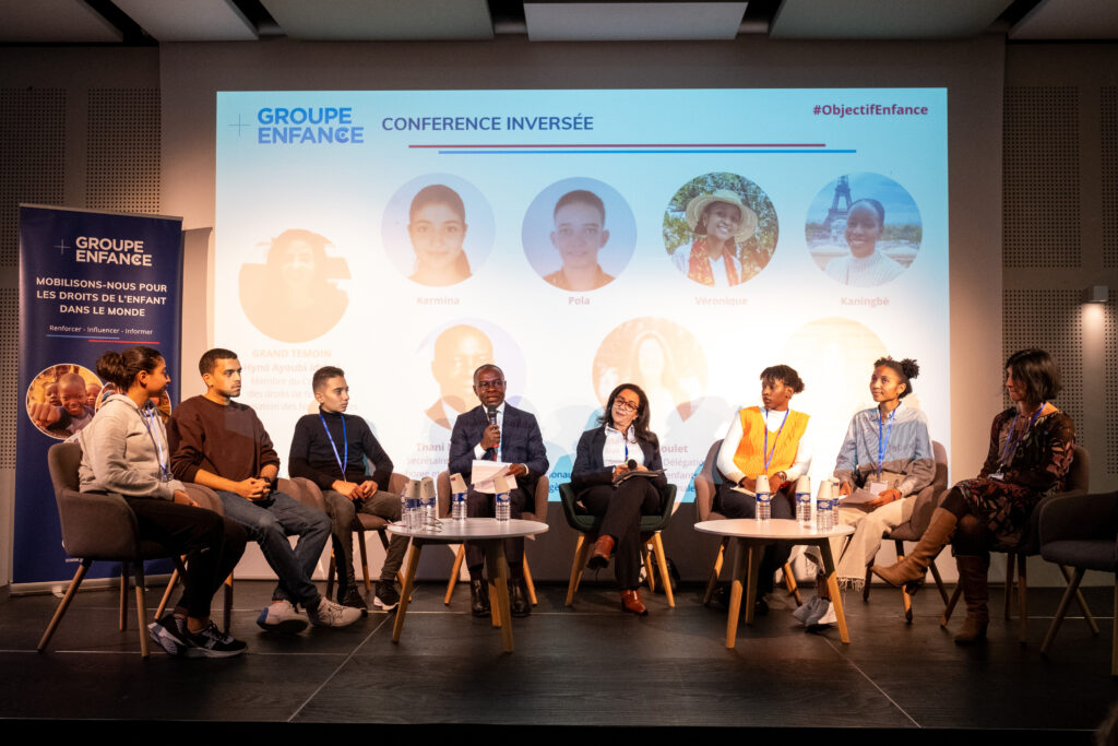 Modérée par Hynd Ayoubi-Idrissi, la conférence inversée a laissé la parole à Kermina et Pola venus d’Egypte, Véronique de Madagascar et Kaningbè, jeune guinéenne engagée depuis ses 16 ans au sein du Club des jeunes filles Leaders de Guinée et membre du Plan des Jeunes de l’ONG Plan International France depuis 2023. Toutes et tous ont présenté leur parcours, leurs expériences et leur conception de la participation des enfants et de son importance, avant de partager leurs attentes pour le futur ainsi que leurs recommandations en matière de réalisation des droits des enfants. A leurs côtés, Thani Mohamed-Soihili, Secrétaire d’Etat chargé de la Francophonie et des Partenariats Internationaux et Perrine Goulet, Députée, Présidente de la Délégation parlementaire aux droits des enfants étaient présents pour réagir à leurs propos.